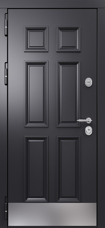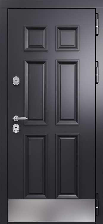 Входная дверь с МДФ №566 создана для тех, кто ценит прочность металла и уютный внешний вид в одном решении. Она одинаково хорошо вписывается в частный дом, квартиру или офис, подчеркивая солидность пространства и обеспечивая надежную защиту. Каркас и полотно собраны из профильных труб, усиленных ребрами жесткости, а стальной лист толщиной 2 мм гарантирует устойчивость к взлому и длительный срок службы. С обеих сторон дверь облицована МДФ панелями с ПВХ-покрытием, что делает поверхность более устойчивой к истиранию и мелким повреждениям, сохраняя привлекательность даже при интенсивной эксплуатации. Панели легко очищаются и не выгорают на солнце, благодаря чему дверь подходит и для уличной установки. Два контура уплотнения надежно защищают от сквозняков и посторонних запахов, а при необходимости можно дополнительно усилить конструкцию тепло- и шумоизоляцией. Модель №566 сочетает в себе сдержанный дизайн и функциональность, делая ее практичным выбором для самых разных помещений. Входная дверь с МДФ №566 от производителя: быстрое изготовление и монтаж в Серпухове, индивидуальные размеры, широкий выбор материалов и фурнитуры, официальная гарантия до 10 лет.