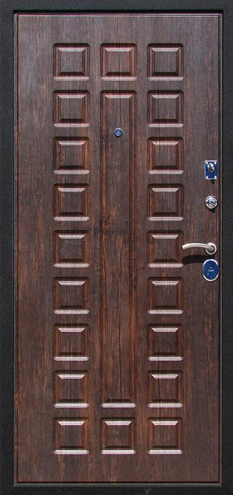 Входная дверь в квартиру ширина стандарт №41 создана как универсальное решение для городских квартир, частных домов и офисных помещений. Конструкция на основе профильной трубы и листа стали толщиной 2 мм обеспечивает прочность и устойчивость к взлому, а рёбра жёсткости добавляют дополнительную надёжность. С обеих сторон дверь облицована плитами МДФ, которые придают поверхности аккуратный внешний вид и защищают её от мелких повреждений. Такой вариант отделки отличается практичностью: панели устойчивы к влаге, сохраняют форму и цвет, даже если дверь эксплуатируется ежедневно. Два контура резиновых уплотнителей не дают проникнуть сквознякам и уличному шуму, а терморазрыв в коробке и полотне препятствует промерзанию в холодное время года. Благодаря стандартной ширине установка не требует сложных подготовительных работ, а при необходимости дверь может быть изготовлена в индивидуальном размере. Входная дверь в квартиру ширина стандарт №41 от производителя: быстрое изготовление и монтаж в Серпухове, индивидуальные размеры, широкий выбор материалов и фурнитуры, официальная гарантия до 10 лет.
