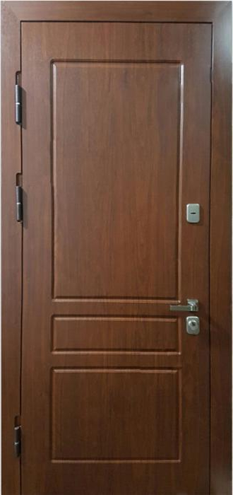 Дверь входная уличная с терморазрывом №41 – это надежная и стильная модель, идеально подходящая для частных домов и коттеджей. Конструкция двери с терморазрывом в коробке и полотне эффективно защищает от холодного воздуха и влаги, обеспечивая стабильный микроклимат внутри помещения. Внешняя и внутренняя отделка из панелей МДФ с ПВХ покрытием не только привлекает внимание своим современным дизайном, но и обеспечивает отличную стойкость к механическим повреждениям, а также долговечность. Металлическое полотно толщиной 1,5 мм с ребрами жесткости из профильных труб гарантирует высокую прочность, а также надежную защиту от взлома. Шумо- и теплоизоляция из пенопласта повышенной плотности создают дополнительный комфорт. Дверь оснащена высококачественными замками Kale Kilit с тремя ригелями, что обеспечивает высокий уровень безопасности. Дверь входная уличная с терморазрывом №41 от производителя: быстрое изготовление и монтаж в Серпухове, индивидуальные размеры, широкий выбор материалов и фурнитуры, официальная гарантия до 10 лет.