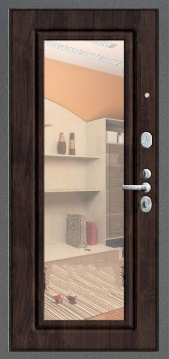 Каркас из профильной трубы и стальной лист толщиной 2 мм обеспечивают прочность конструкции и устойчивость к взлому, а два контура уплотнителей защищают помещение от сквозняков и уличного шума. Входная дверь в квартиру с зеркалом №10 выделяется сочетанием практичного молоткового напыления снаружи и аккуратной плиты МДФ внутри. Такое покрытие не боится механических повреждений и перепадов температуры, долго сохраняя первоначальный вид. Зеркало на внутренней стороне делает прихожую светлее и визуально просторнее, заменяя полноценное настенное. Дополнительные блокираторы и система ребер жёсткости усиливают надежность. Возможность изготовления в любых размерах позволяет адаптировать модель под особенности квартиры, офиса или частного дома, сохранив баланс между эстетикой и безопасностью. Входная дверь в квартиру с зеркалом №10 от производителя: быстрое изготовление и монтаж в Серпухове, индивидуальные размеры, широкий выбор материалов и фурнитуры, официальная гарантия до 10 лет.