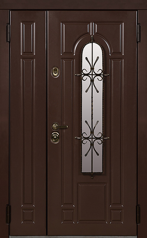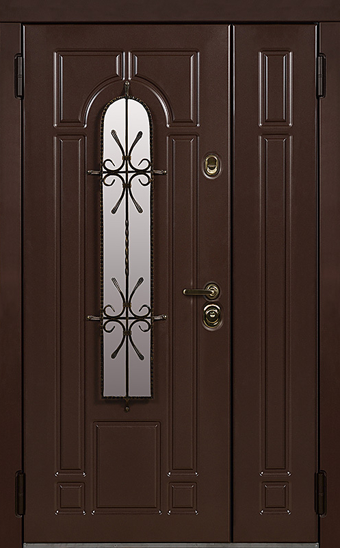 Эта металлическая двухстворчатая дверь с арочным стеклопакетом №15 представляет собой идеальный баланс между эстетикой и прочностью. Арочное стекло добавляет в её дизайн утончённость, а ковка в декоре придаёт изысканный, но в то же время крепкий и надёжный вид. Плита МДФ, используемая как для внешней, так и для внутренней отделки, не только сохраняет прекрасный внешний вид, но и устойчива к механическим повреждениям. Металлическая двухстворчатая дверь с арочным стеклопакетом №15 от производителя: быстрое изготовление и монтаж в Серпухове, индивидуальные размеры, широкий выбор материалов и фурнитуры, официальная гарантия до 10 лет.