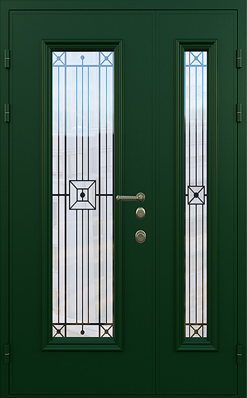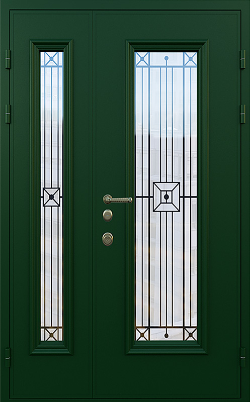 Зеленая полуторная дверь со стеклопакетом для частного дома №18 — это идеальный выбор для тех, кто хочет добавить в свой дом надежность и стиль. Элементы декора, такие как багет и ковка, придают двери элегантный вид, который идеально гармонирует с фасадом загородного дома. Панели МДФ с ПВХ-покрытием, использованные для внешней и внутренней отделки, обеспечивают высокую стойкость к механическим повреждениям и внешним воздействиям, сохраняя прекрасный внешний вид на долгое время. Зеленая полуторная дверь со стеклопакетом для частного дома №18 от производителя: быстрое изготовление и монтаж в Серпухове, индивидуальные размеры, широкий выбор материалов и фурнитуры, официальная гарантия до 10 лет.