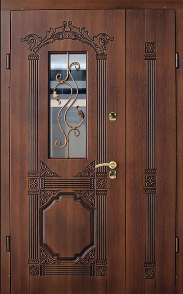 Уличная двухстворчатая дверь со стеклом и кованой решеткой №26 — это не только надежная защита для вашего дома, но и элемент, который подчеркнет его стиль и индивидуальность. Внешняя отделка из МДФ с ПВХ обеспечивает долговечность, устойчивость к внешним воздействиям и сохранение эстетического вида на долгое время. Добавление кованой решетки и стеклопакета придает двери элегантности, а также улучшает светопропускание, создавая комфортное освещение в вашем помещении. Уличная двухстворчатая дверь со стеклом и кованой решеткой №26 от производителя: быстрое изготовление и монтаж в Серпухове, индивидуальные размеры, широкий выбор материалов и фурнитуры, официальная гарантия до 10 лет.