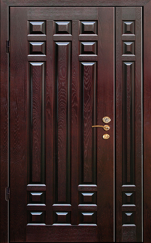 Эта двухстворчатая парадная дверь с объемной фрезеровкой №3 станет отличным акцентом в любом интерьере, добавив элегантности и солидности. Внешняя и внутренняя отделка из натурального дерева придает двери натуральный и стильный вид, который легко впишется как в классические, так и современные дизайны. Прочная конструкция двери с каркасом из профильной трубы 50х25 мм и листом металла толщиной 2 мм гарантирует долговечность и защиту. Ребра жесткости из профильных труб 40х25 мм повышают ее устойчивость к нагрузкам. Замки "Просам" и "Мосрентген" с тремя ригелями обеспечивают надежную защиту. Возможность выбора отделки и установки дополнительных элементов, таких как зеркало, стеклопакет или кованые детали, позволяет сделать дверь уникальной и подходящей под любые требования. Терморазрыв полотна и коробки способствует улучшению теплоизоляции. Вдобавок можно оснастить дверь современными замками и видеодомофоном для дополнительного комфорта и безопасности. Парадная двухстворчатая дверь с объемной фрезеровкой №3 от производителя: быстрое изготовление и монтаж в Серпухове, индивидуальные размеры, широкий выбор материалов и фурнитуры, официальная гарантия до 10 лет.