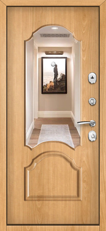 Входная дверь с панорамным глазком широкого обзора №28 идеально подойдет для тех, кто ценит удобство и безопасность. Эта модель оснащена профильной трубой 50х25 мм, что придает ей исключительную прочность. Лист металла толщиной 2 мм и ребра жесткости из труб 40х25 мм обеспечивают надежность конструкции, а два контура резинового уплотнителя надежно защищают от холодного воздуха и посторонних шумов. Внешняя и внутренняя отделка выполнены из МДФ, что придает двери элегантный и современный вид. Ее можно использовать как в частном доме, так и в квартире или офисе. Дверь комплектуется двумя замками — сувальдным и цилиндровым, что повышает уровень безопасности. Благодаря возможности комбинирования отделок и добавления зеркала, стеклопакета или кованых элементов, вы можете адаптировать дверь под любые интерьерные решения. Если нужно, можно установить видеодомофон для дополнительного удобства. Входная дверь с панорамным глазком широкого обзора №28 от производителя: быстрое изготовление и монтаж в Серпухове, индивидуальные размеры, широкий выбор материалов и фурнитуры, официальная гарантия до 10 лет.