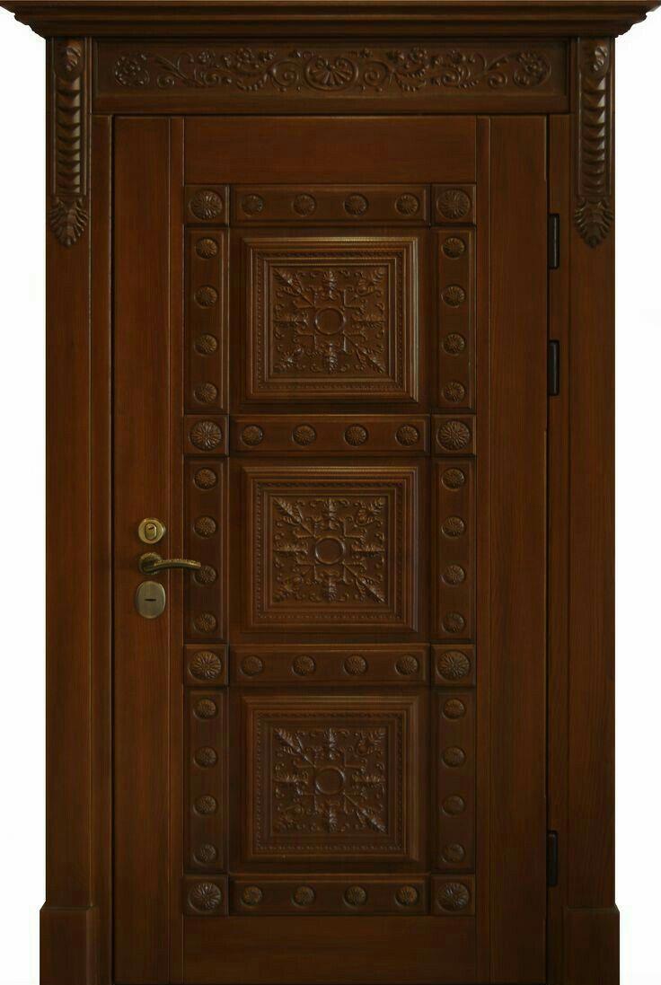 Красивая шпонированная дверь с надежной фурнитурой и ковкой "лоза" №33