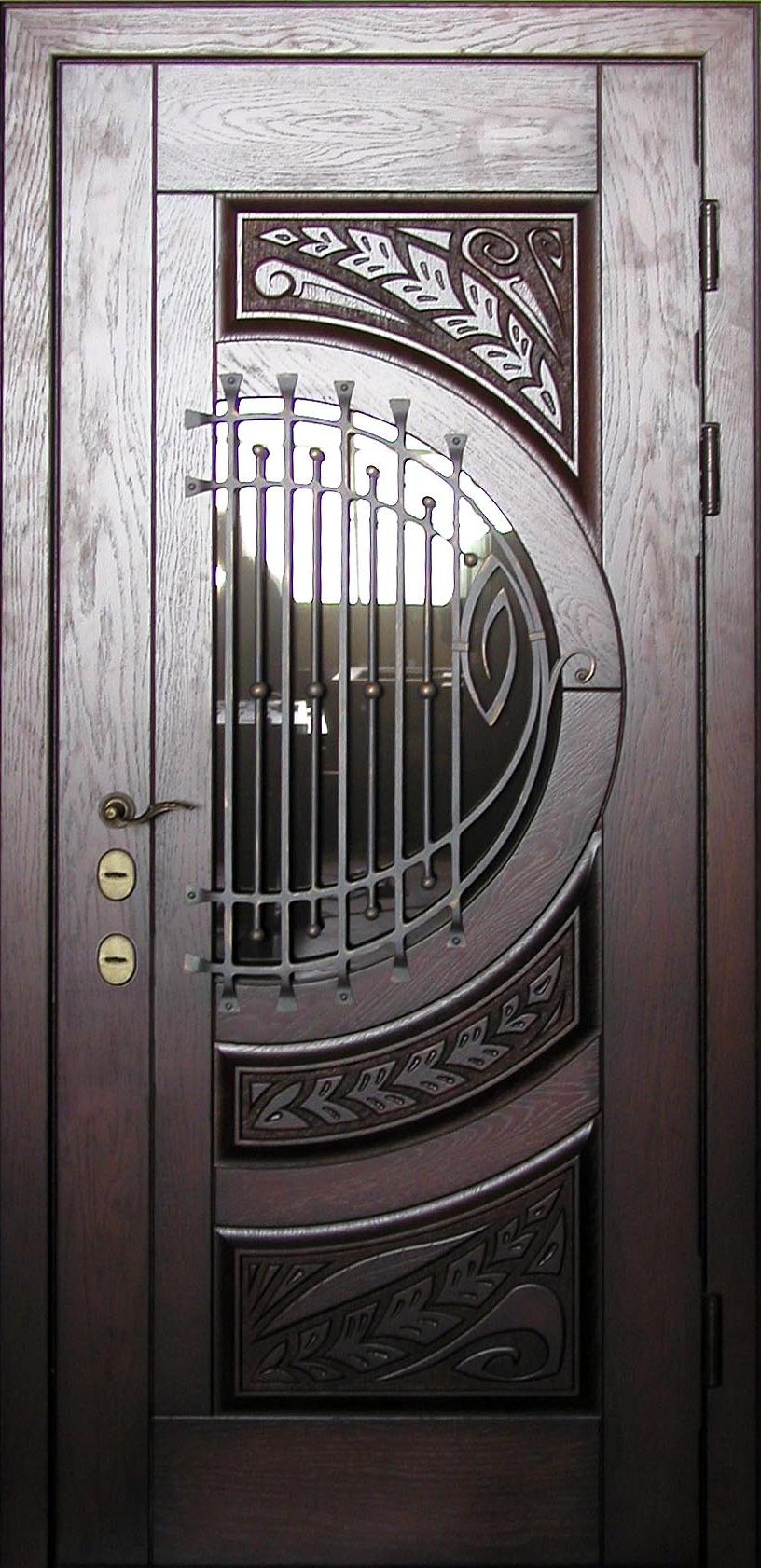 Эксклюзивная глянцевая дверь в частный дом с нестандартной фрезеровкой №24