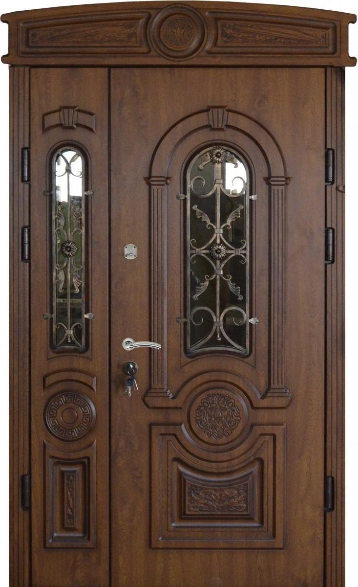Натуральный массив дерева в отделке делает конструкцию не только практичной, но и выразительной, подчеркивающей архитектурный стиль загородного дома. Металлическая основа из профильной трубы с листом толщиной 2 мм и системой ребер жесткости обеспечивает прочность и надежность даже при активной эксплуатации. Дверь со стеклом входная уличная №402 гармонично сочетает декоративные свойства древесины и защитные качества стали, а вставка из стекла добавляет света в прихожую и визуально облегчает массивное полотно. Для защиты от холода предусмотрены два контура уплотнителей и блокираторы, усиливающие надежность системы. Итальянские замки Cisa — цилиндровый и сувальдный — с множеством ригелей обеспечивают высокий уровень безопасности. Возможность выбора направления открывания и дополнение двери коваными элементами или умными замками делает модель универсальной и подходящей для частных домов, где важны статус и комфорт. Дверь со стеклом входная уличная №402 от производителя: быстрое изготовление и монтаж в Серпухове, индивидуальные размеры, широкий выбор материалов и фурнитуры, официальная гарантия до 10 лет.