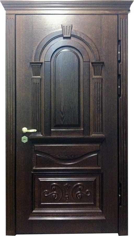 Эксклюзивная высокая входная дверь с железным отбойником №36