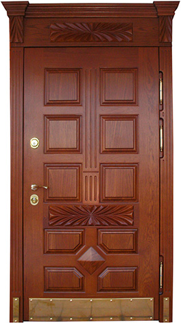 Эксклюзивная высокая входная дверь с железным отбойником №36 — это образец элегантности и функциональности, который идеально впишется в любой частный дом или коттедж. Изготовленная из массива дерева, она будет долго сохранять свой привлекательный внешний вид и устойчивость к внешним воздействиям. Прочная конструкция из профильных труб и листа металла толщиной 2 мм, усиленная ребрами жесткости, гарантирует надежность и долговечность. Терморазрыв в коробке и полотне помогает минимизировать теплопотери и защищает от перепадов температуры. Дверь оснащена высококачественными замками, что обеспечивает высокий уровень безопасности. Железный отбойник добавляет двери не только дополнительную защиту, но и стильный элемент дизайна. Эксклюзивная высокая входная дверь с железным отбойником №36 от производителя: быстрое изготовление и монтаж в Серпухове, индивидуальные размеры, широкий выбор материалов и фурнитуры, официальная гарантия до 10 лет.