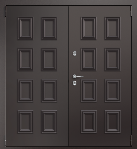 Металлическая дверь в широкий проем с двумя створками №15 — это решение для тех, кто ищет сочетание прочности и элегантного дизайна. Внешняя и внутренняя отделка из МДФ придает двери стильный вид, одновременно защищая ее от царапин и внешних повреждений. Конструкция из профильной трубы 50х25 мм и листа металла толщиной 2 мм обеспечивает высокой прочность и надежность, а ребра жесткости добавляют дополнительную устойчивость. Каркас с терморазрывом в коробке и полотне гарантирует хорошую теплоизоляцию. Два контура резинового уплотнителя эффективно защищают от сквозняков и шума, обеспечивая комфорт внутри помещения. Замки с тремя ригелями, такие как Просам и Мосрентген, надежно защищают от взлома. Эта дверь подходит для установки в местах, где требуется усиленная конструкция и визуальная привлекательность. Металлическая дверь в широкий проем с двумя створками №15 от производителя: быстрое изготовление и монтаж в Серпухове, индивидуальные размеры, широкий выбор материалов и фурнитуры, официальная гарантия до 10 лет.