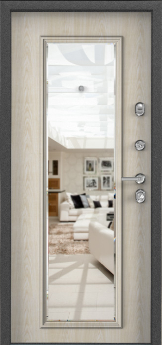 Сочетание прочной конструкции и декоративных решений делает эту модель особенно практичной для частного дома или квартиры. Каркас и полотно выполнены из профильной трубы с листом стали толщиной 2 мм, усиленные рёбрами жёсткости и блокираторами, что обеспечивает высокую надёжность. Два контура резинового уплотнителя препятствуют проникновению влаги и сквозняков, а порошковое напыление на внешней поверхности защищает металл от коррозии и сохраняет аккуратный вид даже при воздействии осадков и солнечного света. Внутренняя отделка панелями МДФ ПВХ создаёт уютный интерьерный акцент и устойчива к повседневным нагрузкам. Дверь входная металлическая уличная в дом №12 дополнена зеркалом, которое делает её не только функциональной, но и более удобной в быту. Для безопасности предусмотрены два замка российского производства — сувальдный Просам и цилиндровый Мосрентген, каждый с тремя ригелями. Дополнительно дверь можно оснастить стеклопакетом или коваными элементами, превратив её в индивидуальное решение для конкретных задач. Дверь входная металлическая уличная в дом №12 от производителя: быстрое изготовление и монтаж в Серпухове, индивидуальные размеры, широкий выбор материалов и фурнитуры, официальная гарантия до 10 лет.