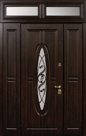 Если дверной проём существенно выше нормы (например, 2,5–3 метра), применяется верхняя вставка – фрамуга. Фрамуга представляет собой неподвижную секцию над дверью, заполняющую лишнее пространство. Она может быть глухой (в едином стиле с полотном) либо остеклённой. Такой приём позволяет установить высокие входные металлические двери, не утяжеляя само полотно и сохраняя правильные пропорции конструкции.